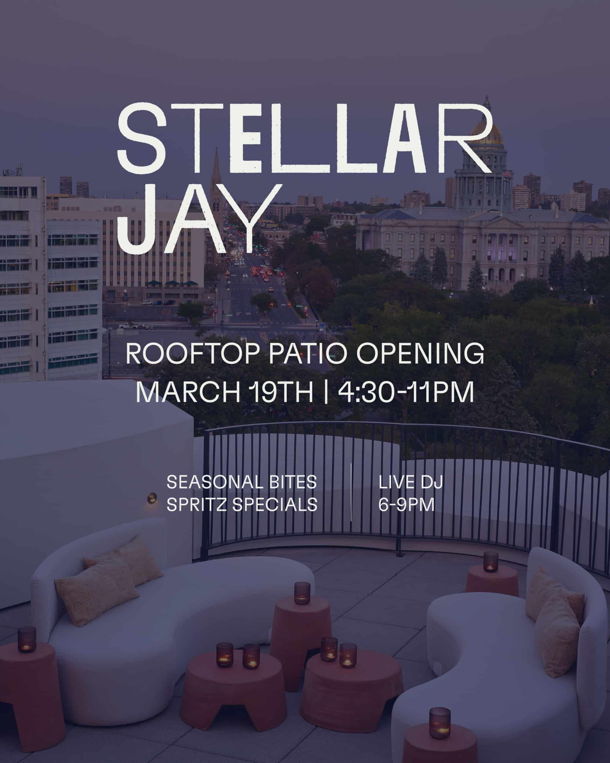 Join us on Thursday, March 19 as Stellar Jay opens the patio for the spring and summer season.